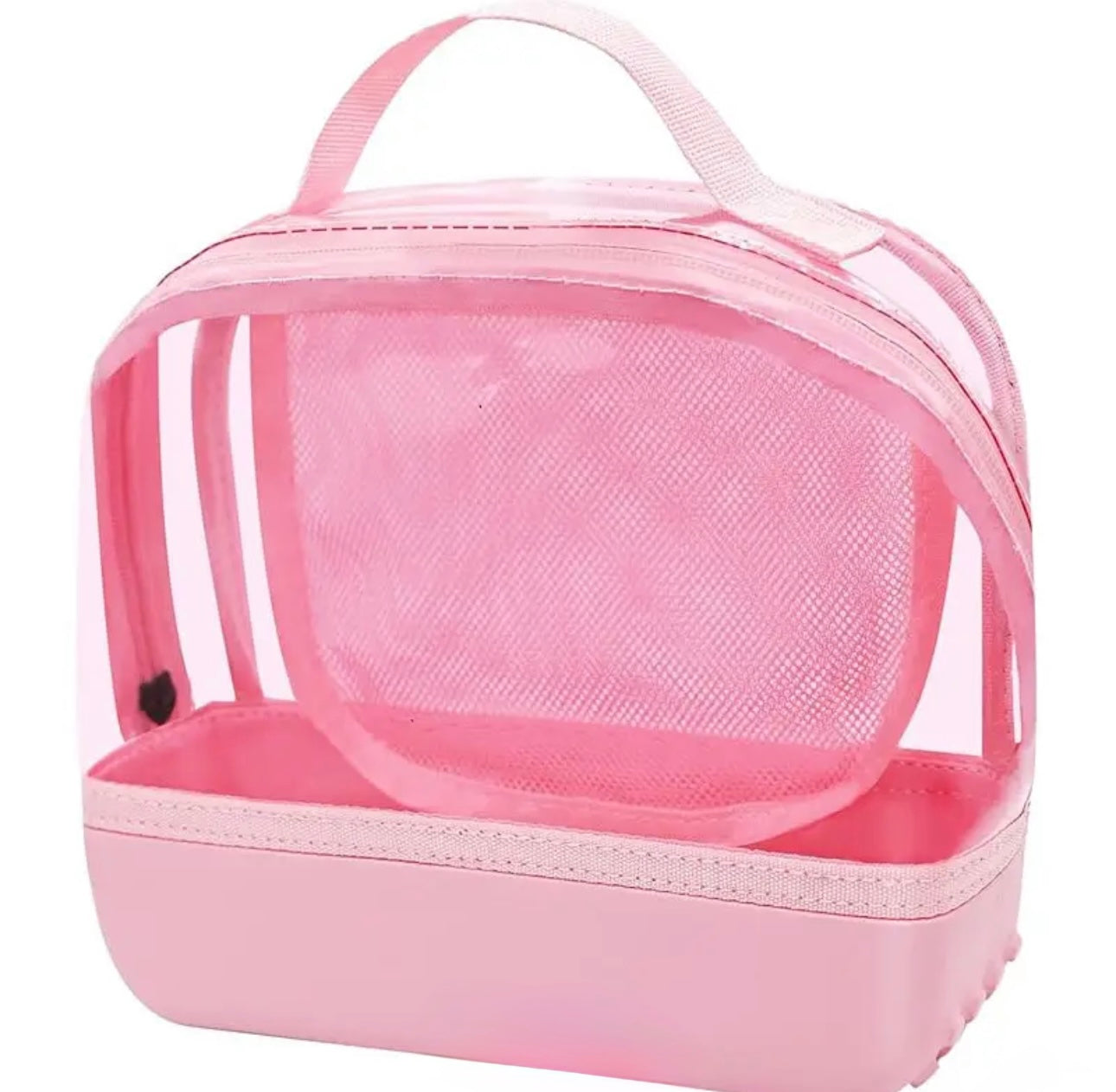 Waterproof, anti slip handle, grippy bottom, & inner mesh pouch.